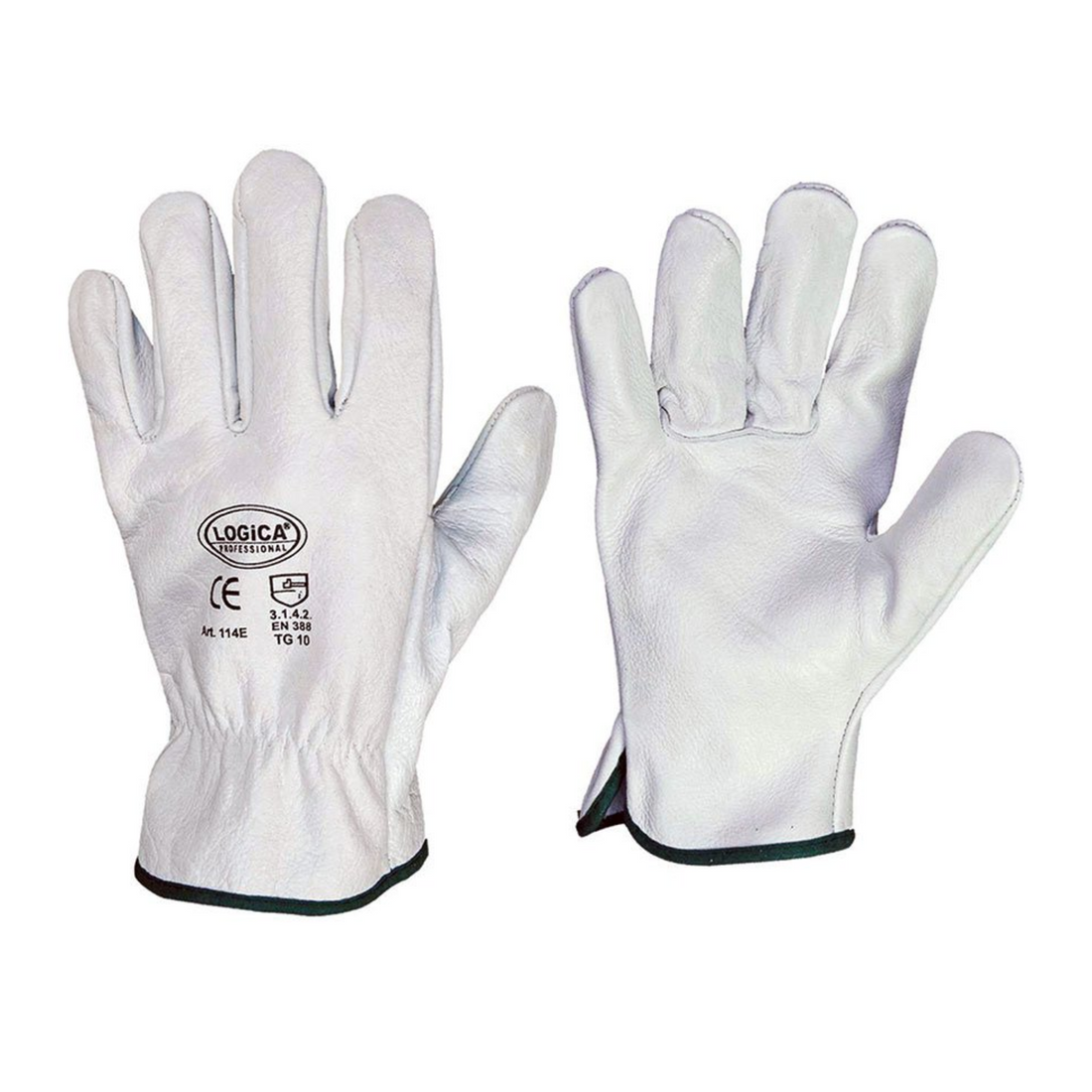 Logica Guanto in pelle fiore bovino bianca, con bordo rinforzato e polsino elastico Modello 114E
