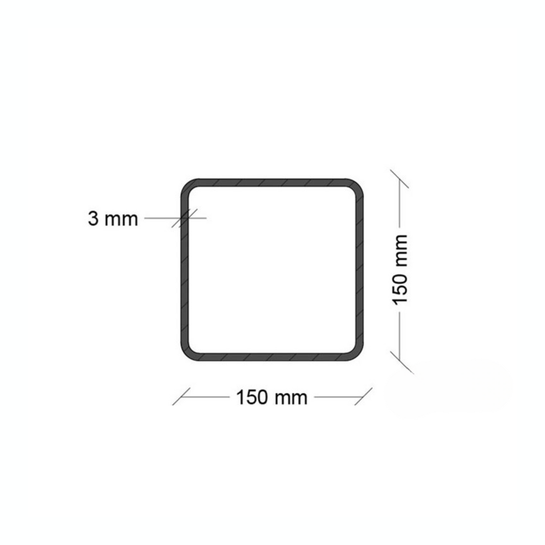 Tubolare Quadro 150x150 - Nero S235JR / Zincato DX51D - Profilato metallico per carpenteria e strutture