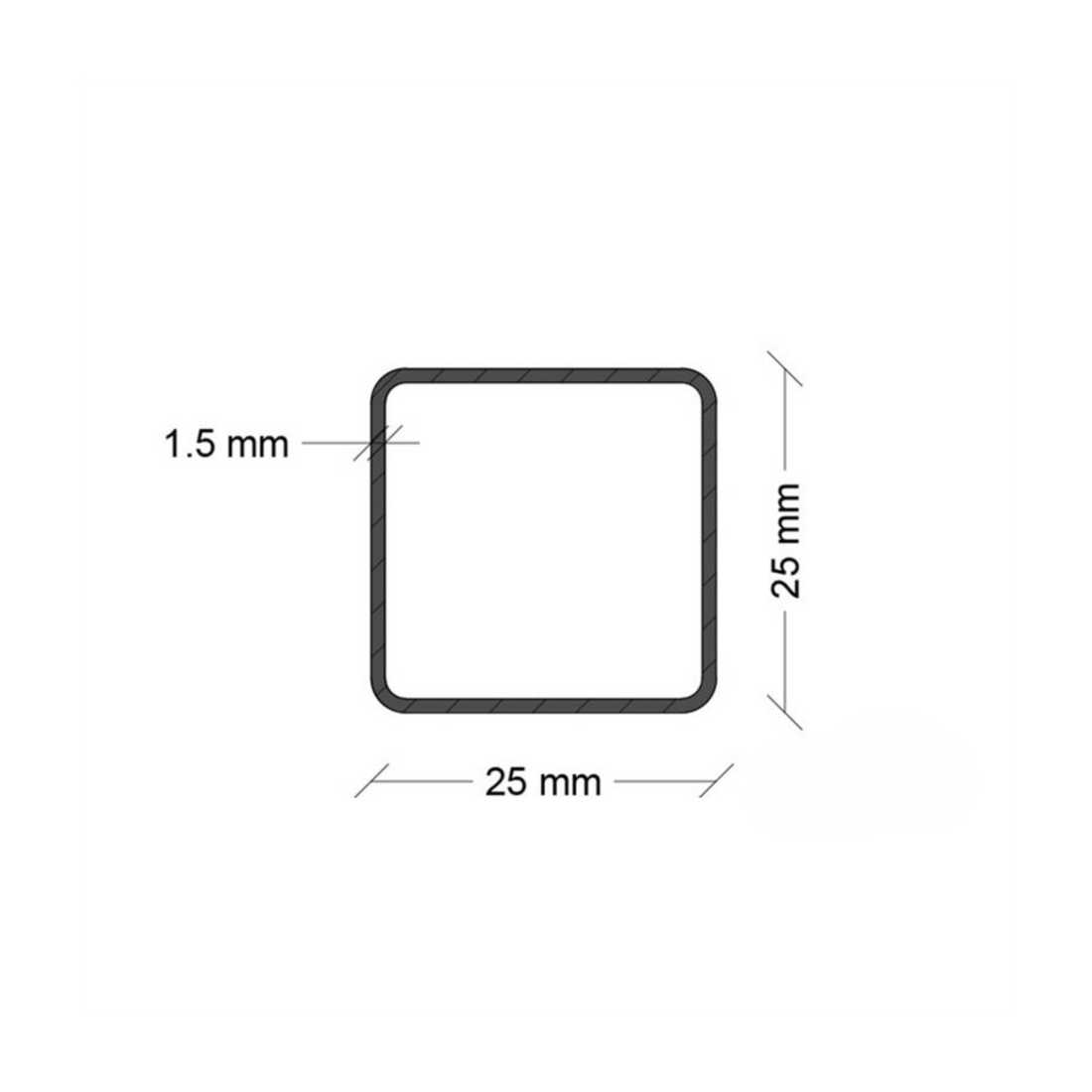 Tubolare Quadro 25x25 - Nero S235JR / Zincato DX51D - Profilato metallico per carpenteria e strutture