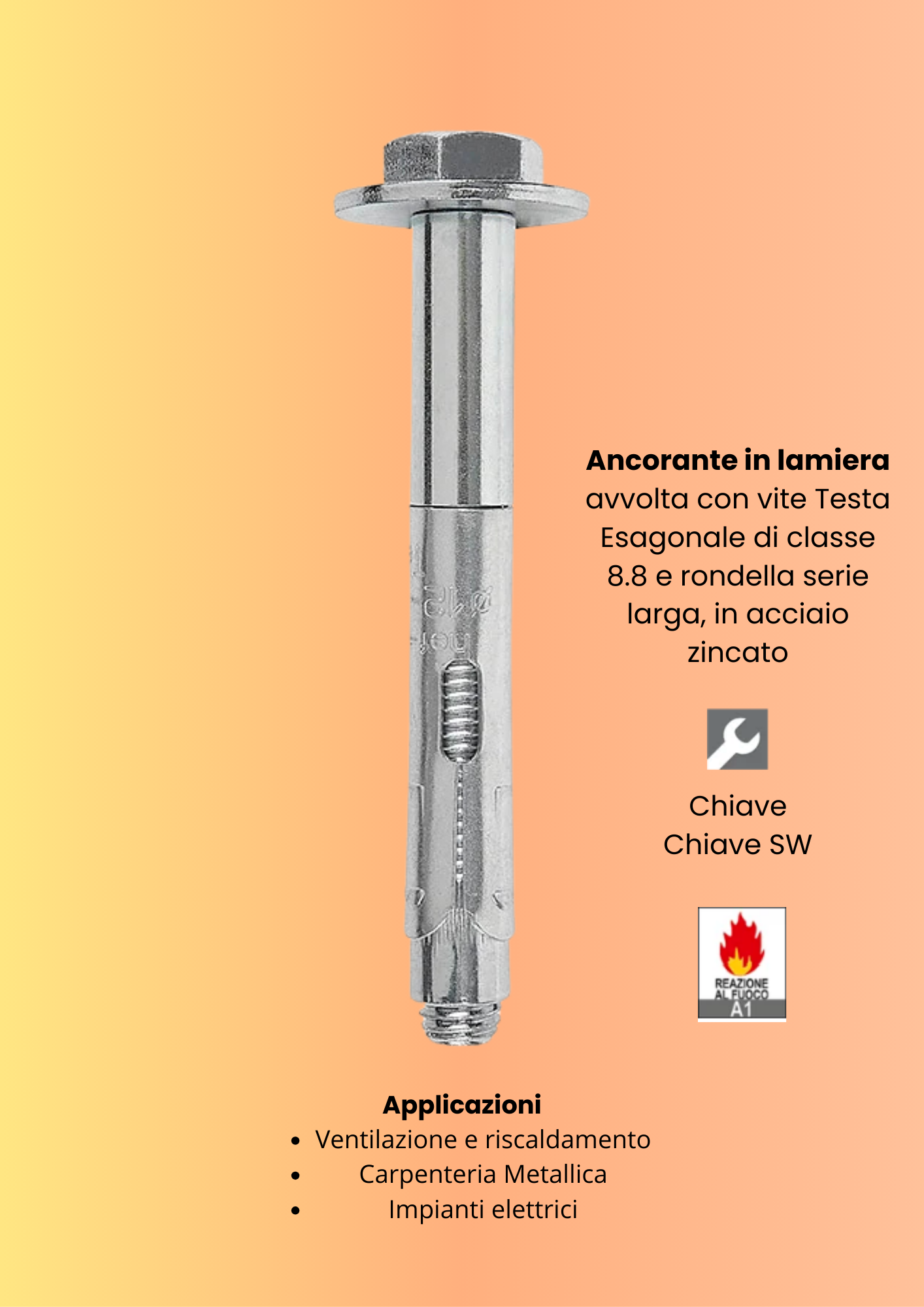 Ancorante in lamiera avvolta con vite Testa Esagonale di classe 8.8 e rondella serie larga, in acciaio zincato